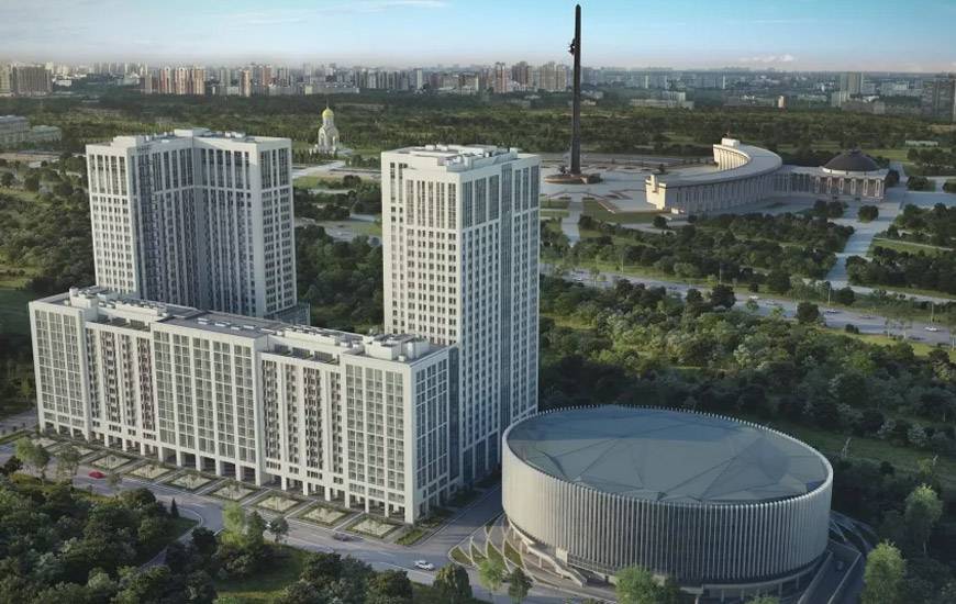 Многофункциональный комплекс “Матч Пойнт” расположился вроде бы совсем рядом с Кутузовским проспектом, но на самом деле, чтобы добраться до него на машине, вам понадобится время – виной всему разделяющие дом и улицу железная дорога и зелёная зона. Попадания в наш список этот объект со спортивным названием (которым он, к слову, обязан спортивной арене, возводимой в его рамках вместе с комплексом апартаментов) всё равно достоин – он довольно необычный, но вместе с тем привлекательный.