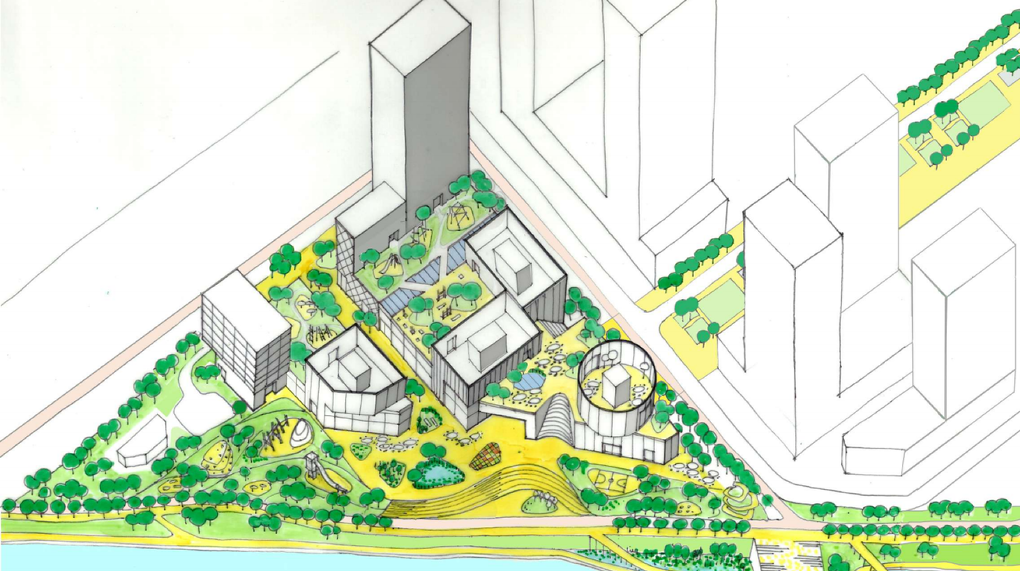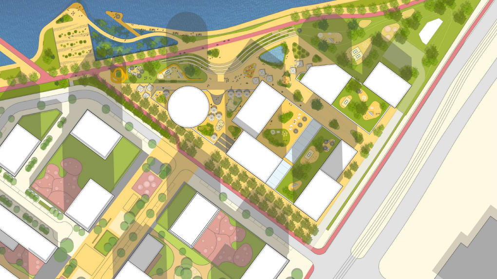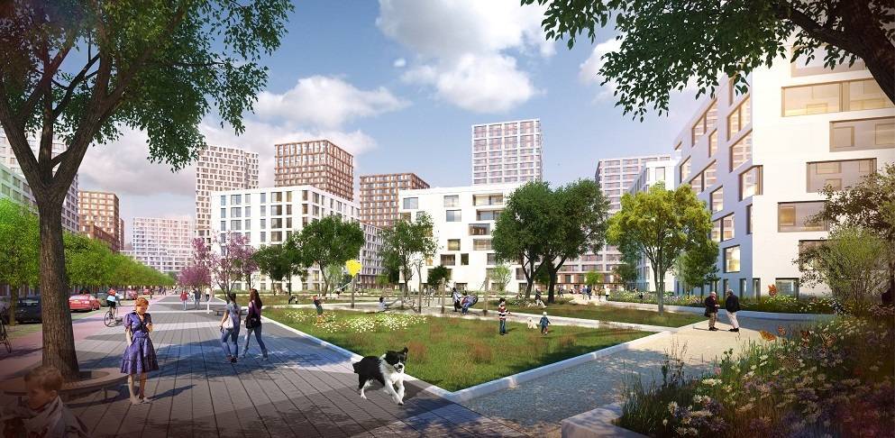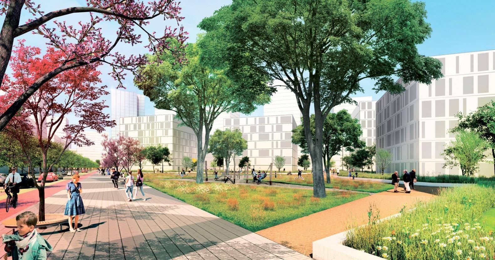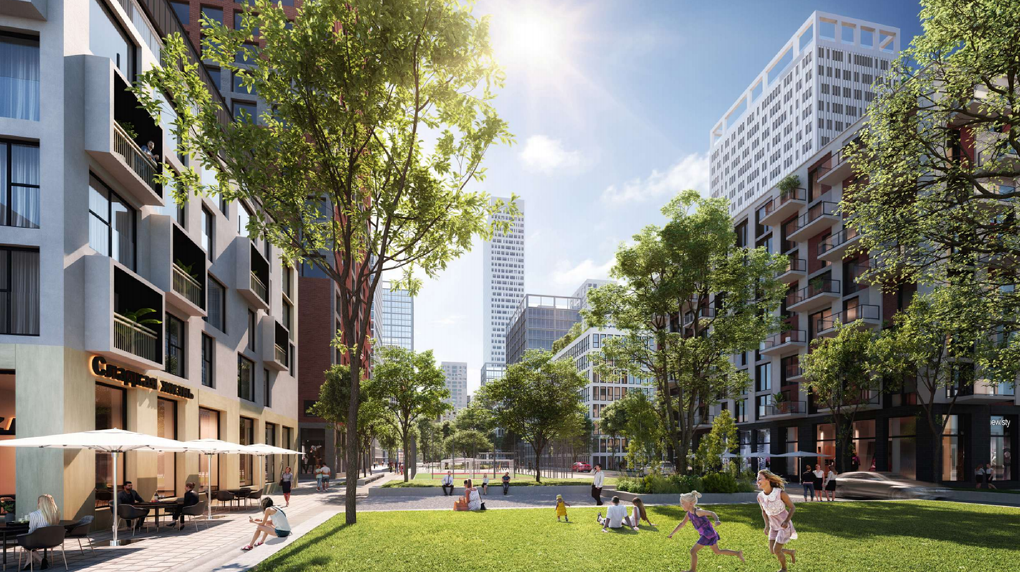 Предполагается, что там построят 300 тыс. кв. метров жилья, 70 тыс. кв. метров коммерческой недвижимости. «Фишкой» района должны стать 49-этажный небоскреб, зеленый бульвар, переходящий в плазу (общественное пространство вроде городской площади) с амфитеатром, набережная и эксплуатируемые кровли на крышах общественных зданий.