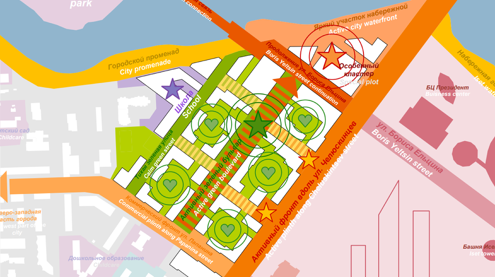- необходимо сохранить основную концепцию мастерплана всего района.