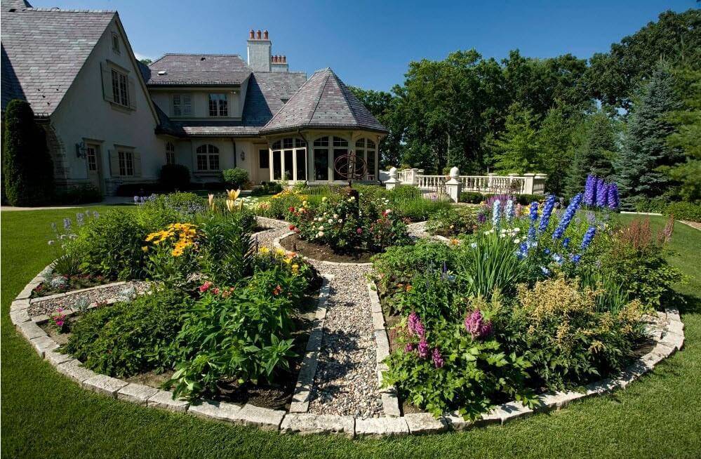 Особенностью садового комплекса являются душистые растения и кустарники. Дизайнеры очень рекомендуют высаживать боярышник, форзицию, айву, спирею, гортензию и жимолость, которые добавят пространству у дома колорита и ароматов.