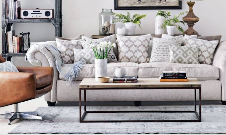 Украсят комнату изящные журнальные столики из темного стекла, мрамора, лакированного дерева. Строгие геометрические формы выбранных предметов меблировки позволят легко создать симметрию, которая так важна при оформлении гостиной.