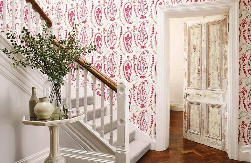 В тесных интерьерах коридора и прихожей не клейте обои с крупными рисунками: они украдут пространство. Зато мелкие рисунки обоев для коридора оттенков, не противоречащих фону, будут восприниматься благоприятно.