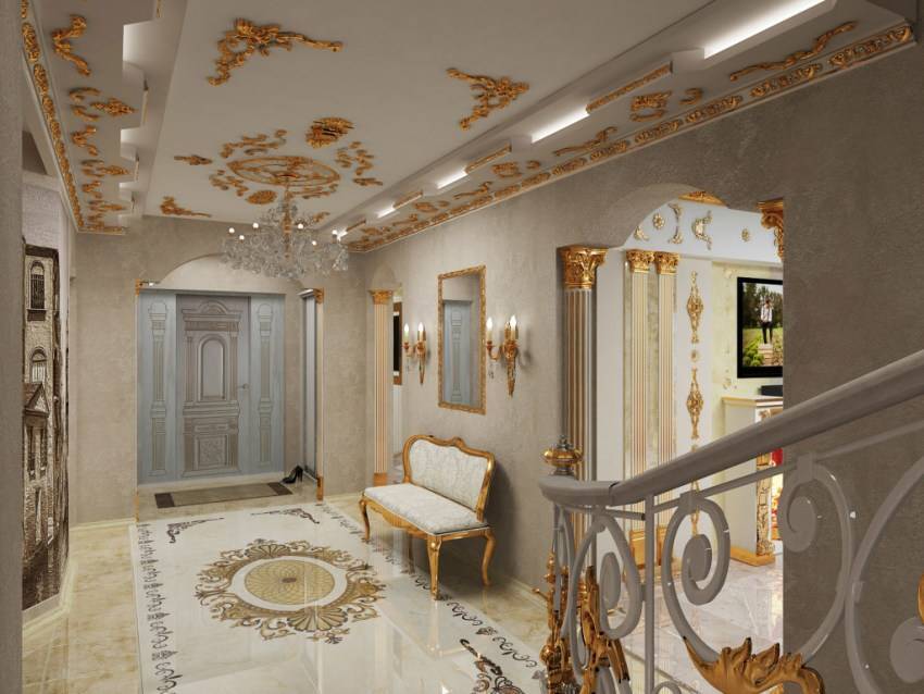 - Обилие бежевого и золотистого. Данные оттенки считаются классическими, ассоциируются с элегантностью, роскошью, изыском. Но в контексте небольших, темных прихожих в малогабаритных квартирах они оказывают диаметрально противоположный эффект – удешевляют помещение, делают его визуально меньше, а теплота цвета при отсутствии дневного освещения смотрится грязно. Потому лучше отдать предпочтение более холодным пастельным оттенкам.