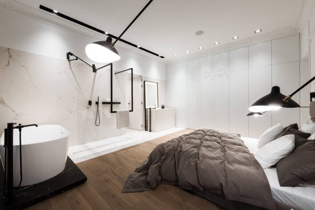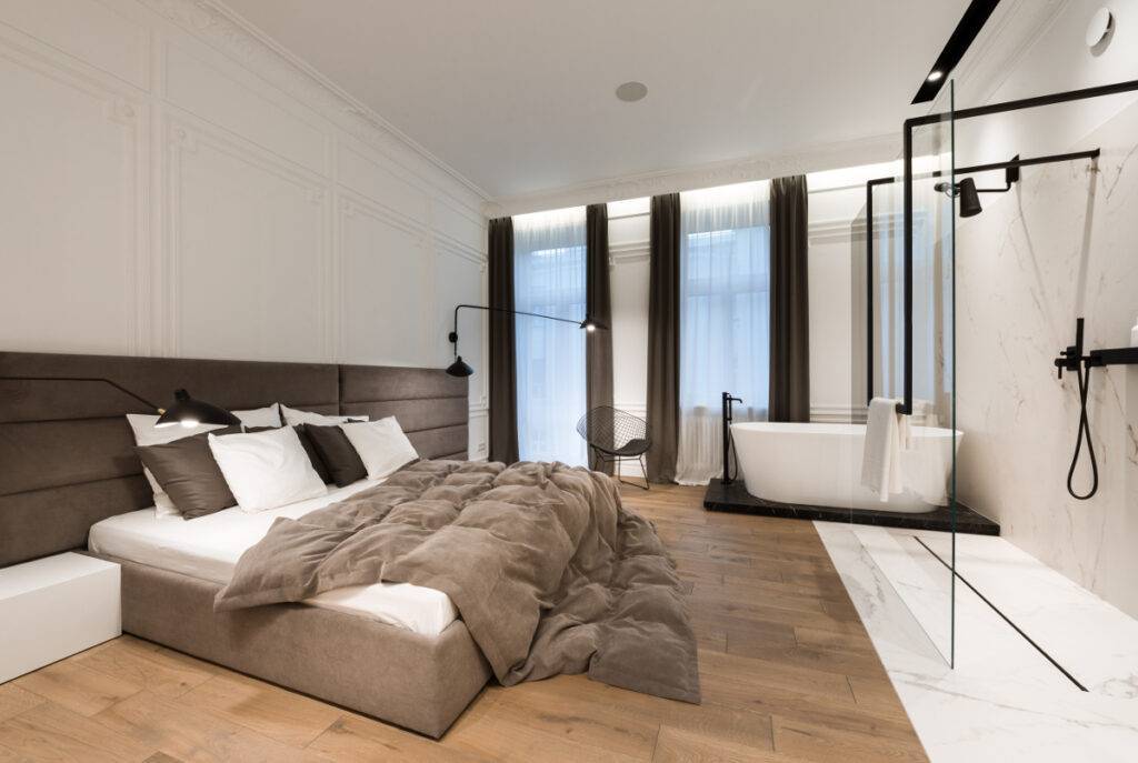 Кстати, о стирающихся границах — исчезают не только границы между садами и ванными комнатами. Если вы следите за самыми горячими тенденциями в мире дизайна, вы, возможно, заметили, что комбинированная спальня — ванная комната является очень популярным выбором для роскошных проектов в последние годы.
