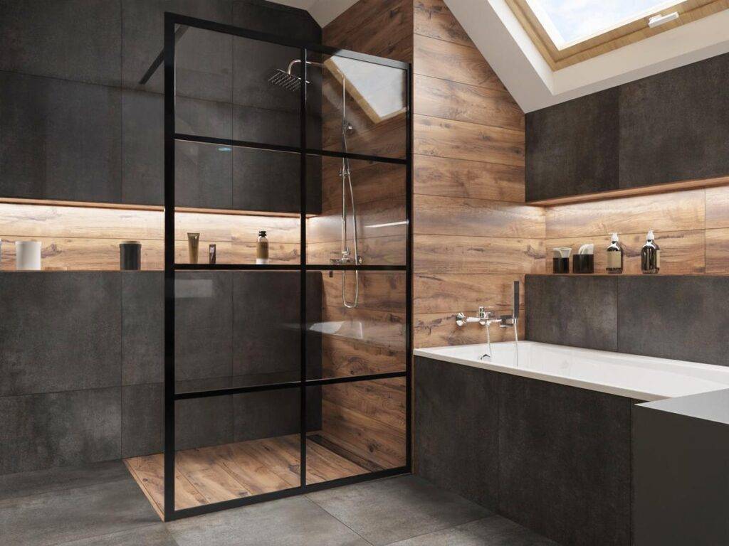 - Очень смелым решением является оформление пола и стен в тёмных оттенках, а потолка в светлых. Далеко не все готовы на такое оформление ванной комнаты. Если переборщить с тёмных и оттенками, то из ванной комнаты получится что-то похожее на подвальное помещение. Подобное оформление подойдёт для тех, кто хочет оформить ванную комнату в стиле лофт.
