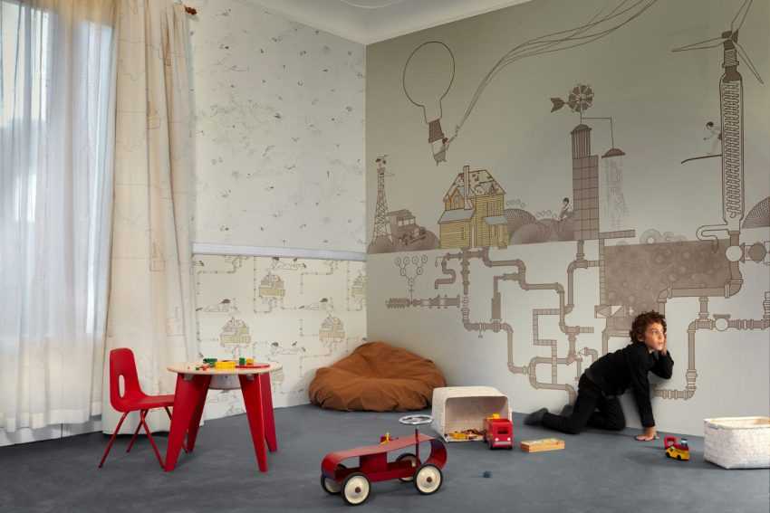 Если же правильно выбрать картинку, то комнату зрительно можно сделать больше, а объект, изображенный на полотне, из части отделки превратится в чуть ли не реальный предмет интерьера. Выезжающий прямо из стены автомобиль, вылетающий супергерой или мчащийся вперед динозавр – это очень эффектно. Но, повторим, главное, чтобы ребенок не испугался.