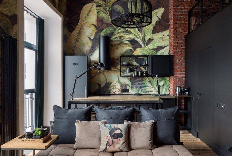 Для лофта актуально использование обоев, имитирующих поверхность камня или штукатурку.