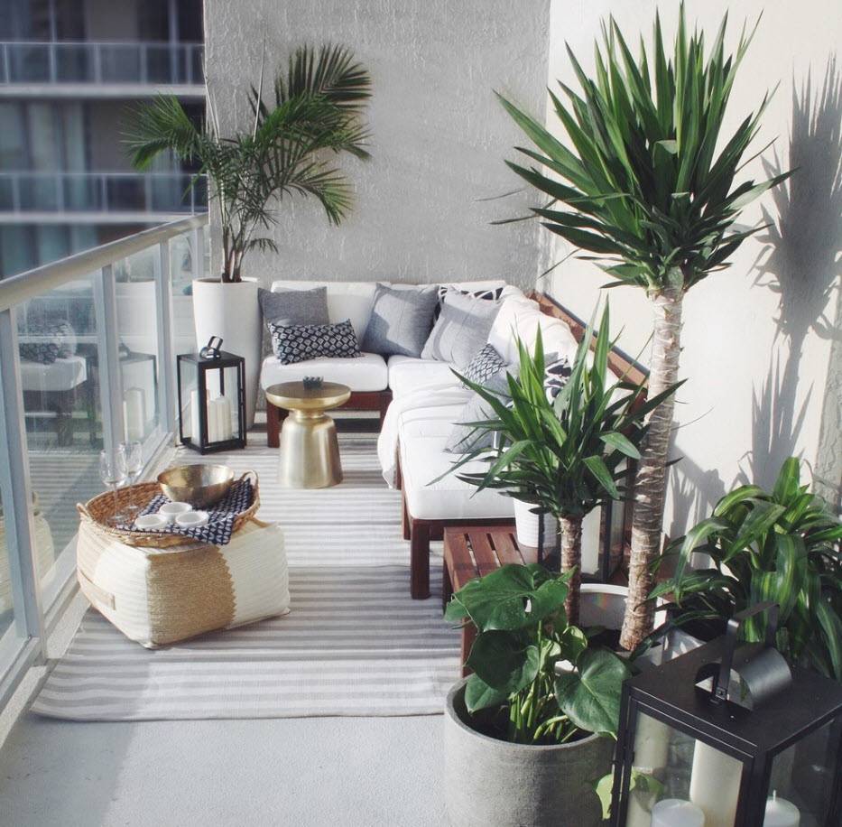 Если балкон узкий и длинный, вы можете установить растения по сторонам в несколько рядов, поставив сзади более высокое растение (это могут быть тростники или травы), а спереди какие-то более декоративные, с цветами.