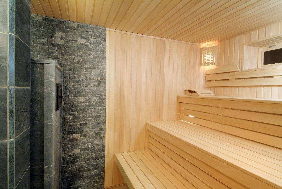 Выполнять внутреннюю отделку сауны или бани древесными плитами или линолеумом нельзя, особенно это касается моечного отделения или парной. Такие материалы негативно сказываются на здоровье.