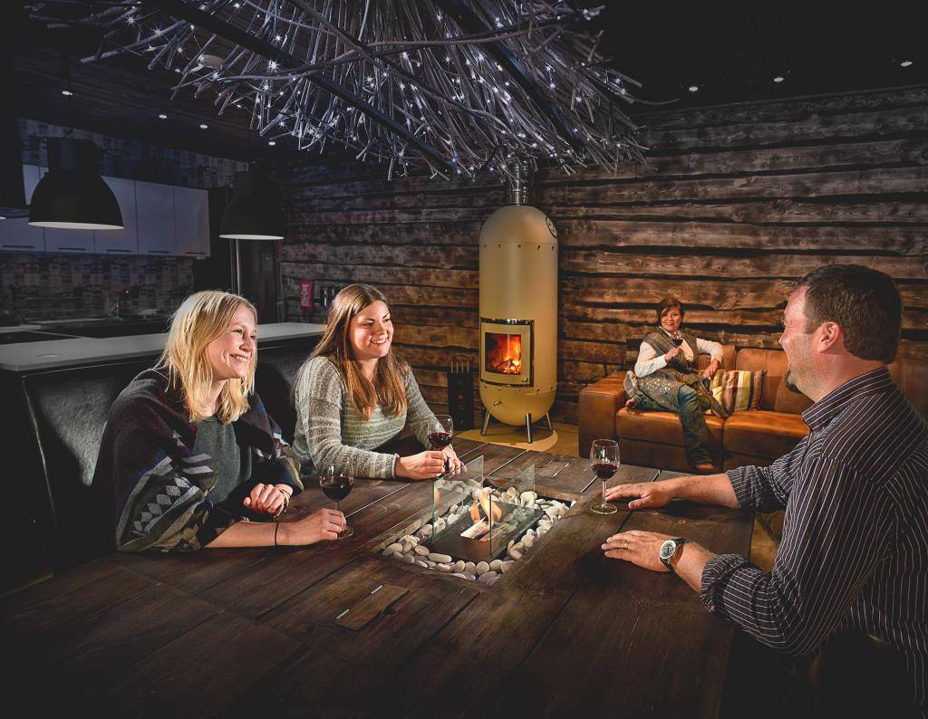 Применение современных модификаций печей-каминов длительного горения позволяют поддерживать необходимую температуру долгое время, при этом расход дров будет минимальным, что важно в холодном климате. Предметы интерьера подбираются в традиционном скандинавском стиле – удобная массивная мебель из натурального дерева
