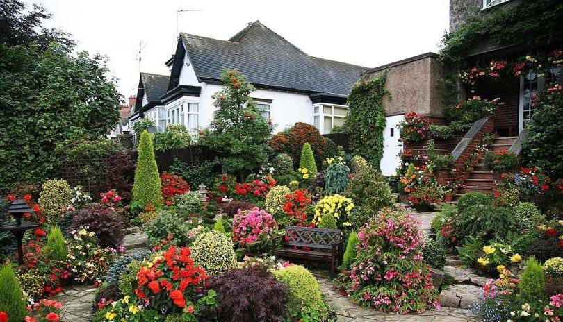 - На небольшом и среднем участке не стоит увлекаться крупными клумбами (как и обширными газонами). Выходом может стать клумба непрерывного цветения.