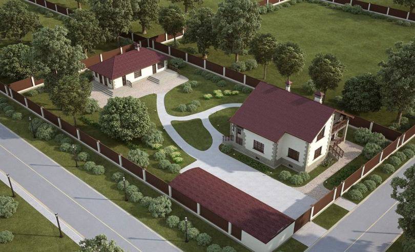 - Жилой дом. Для него отводится приблизительно 10% земли.