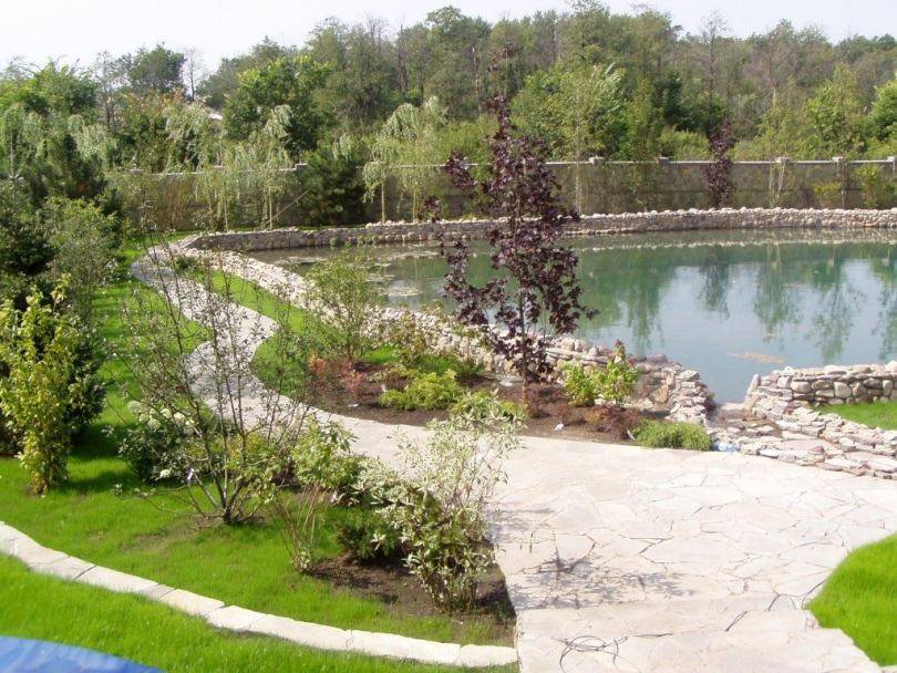 Эффектным дополнением зоны отдыха станут цветники, миниатюрный прудик, обрамленный влаголюбивыми растениями, аккуратно выложенные петляющие дорожки