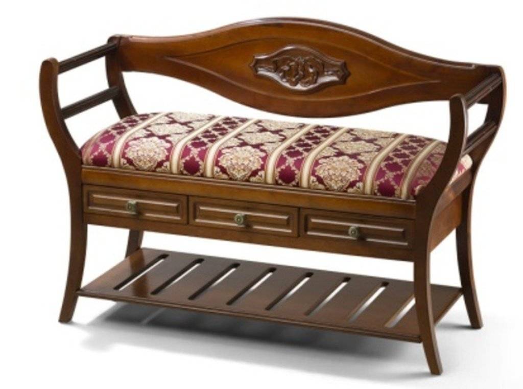Этот вид идеален для тех, кто любит комфортно обуваться. Конструкция отличается тем, что сверху такой полочки под обувь находится сиденье, которое может быть как мягким, так и жестким. Модель может быть дополнена спинкой, тумбочкой для мелочей или вешалкой. Обычно полки-скамейки для обуви не предусматривают дверок, и туфли хранятся в открытом виде. Благодаря этому кроссовки, босоножки или ботинки, которые носятся постоянно, проветриваются и просыхают. Размеры такой мебели небольшие — она с легкостью может вписаться в маленькую по квадратным метрам прихожую. Но следует учитывать, что много обуви такая конструкция не вместит.