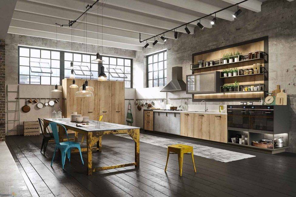 Если площадь кухни в квартире маленькая, элементы стиля лофт придадут ему черты богемного шика и легкой небрежности.