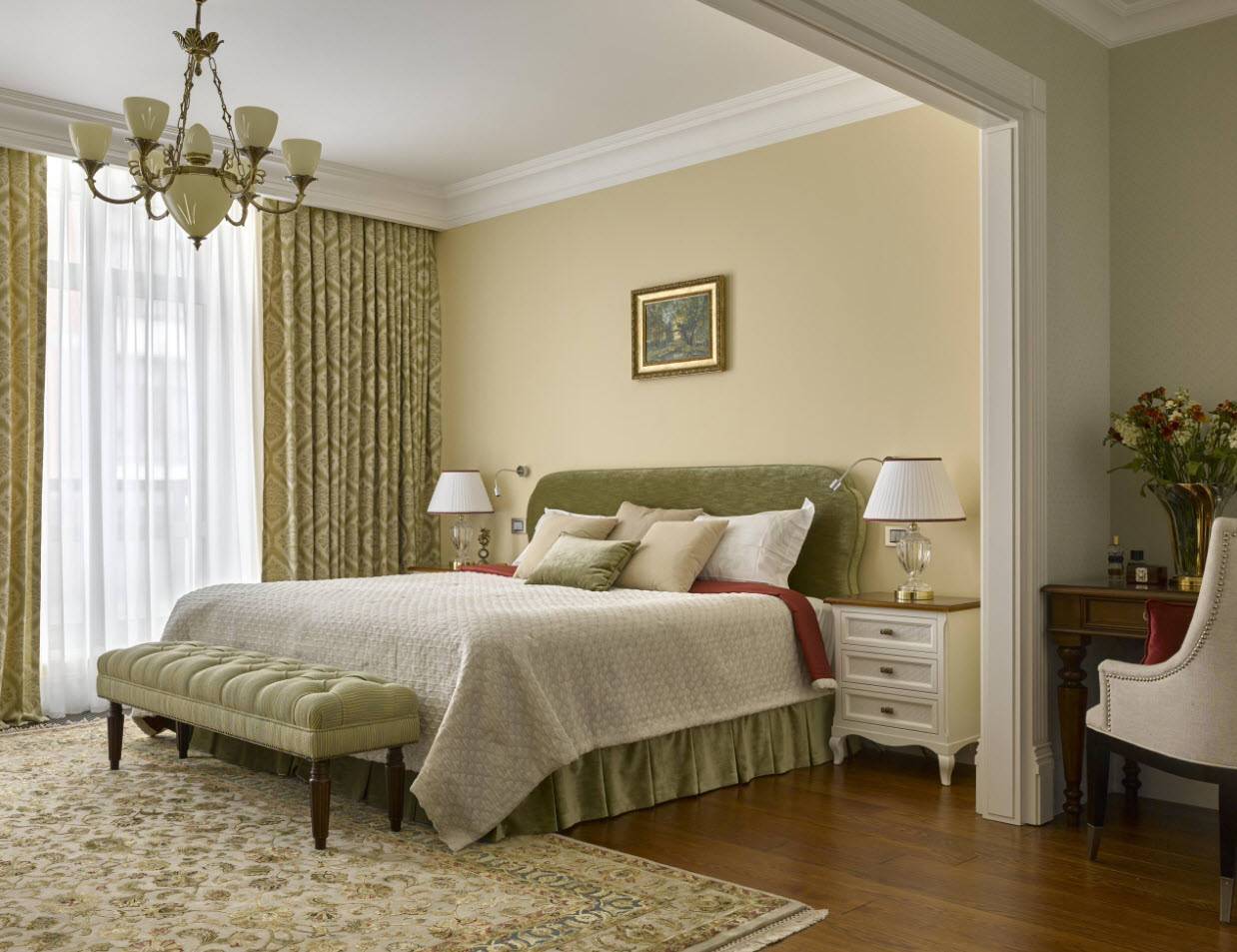 Голубой, песочный, желтый, зеленый в светлом варианте цвета на сегодня считаются самыми трендовыми расцветками для спальни.