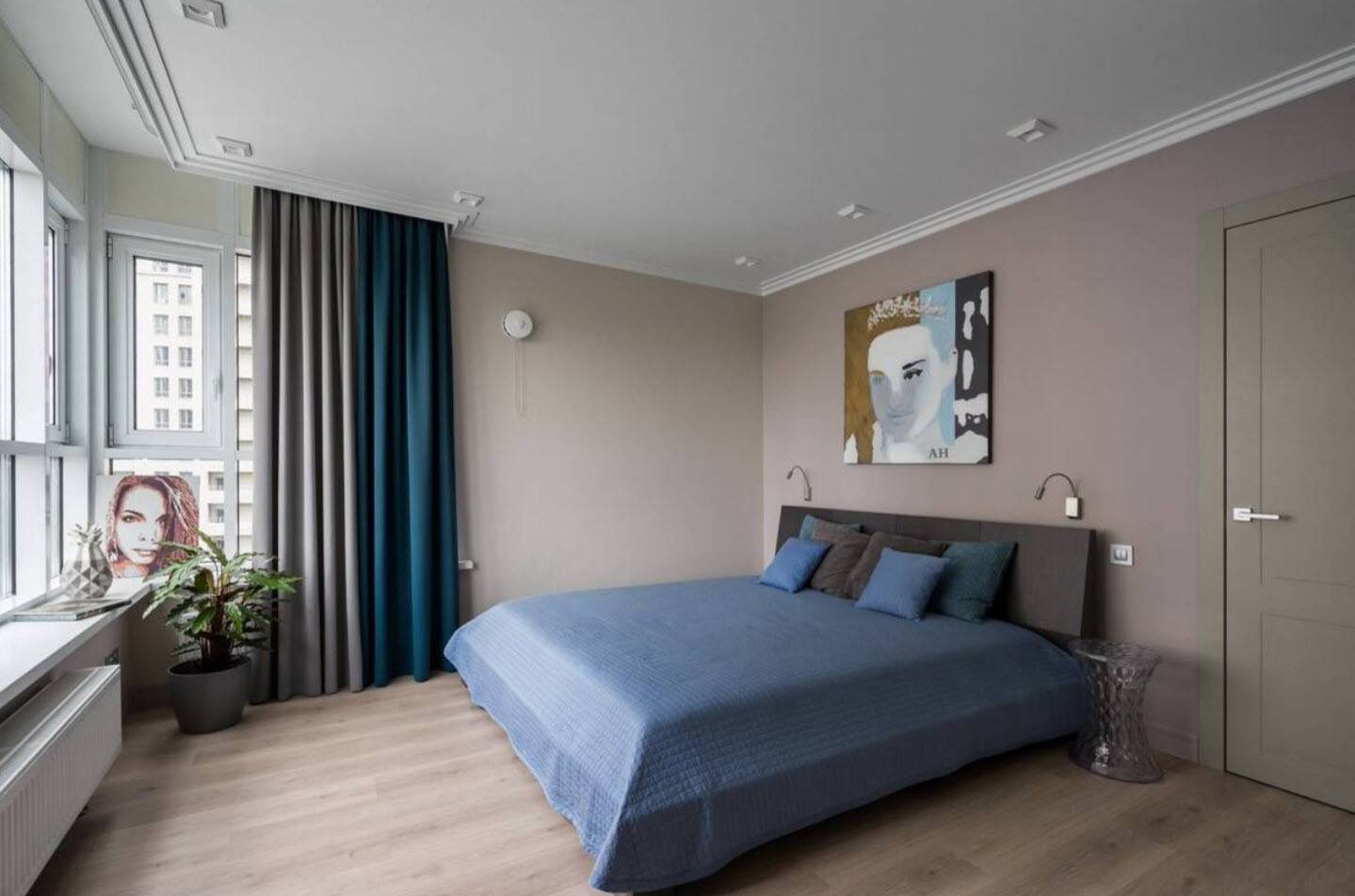 Особе внимание следует уделить шторам на окнах в спальной комнате. Если оконные проемы располагаются на одной стене, между ними имеется маленькое расстояние, то можно обратиться к легким и простым шторам, лишенным каких-либо декоративных элементов