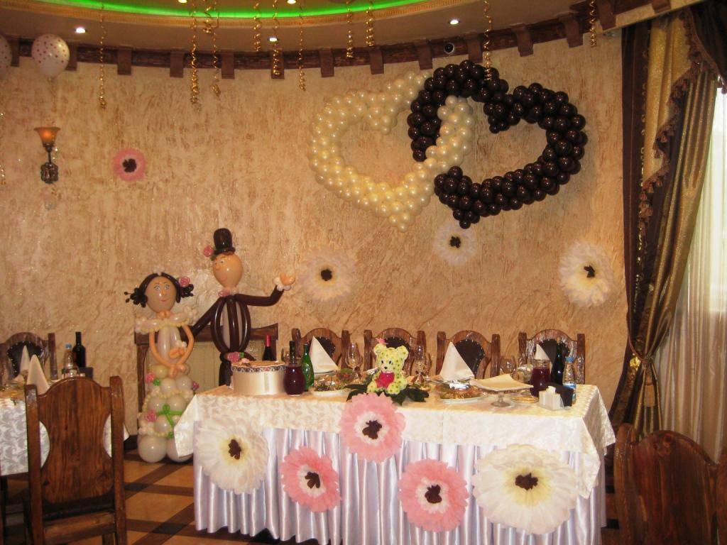 Обратите внимание на фото ниже. Зал для молодоженов, украшенный шарами, выглядит очень стильно и празднично