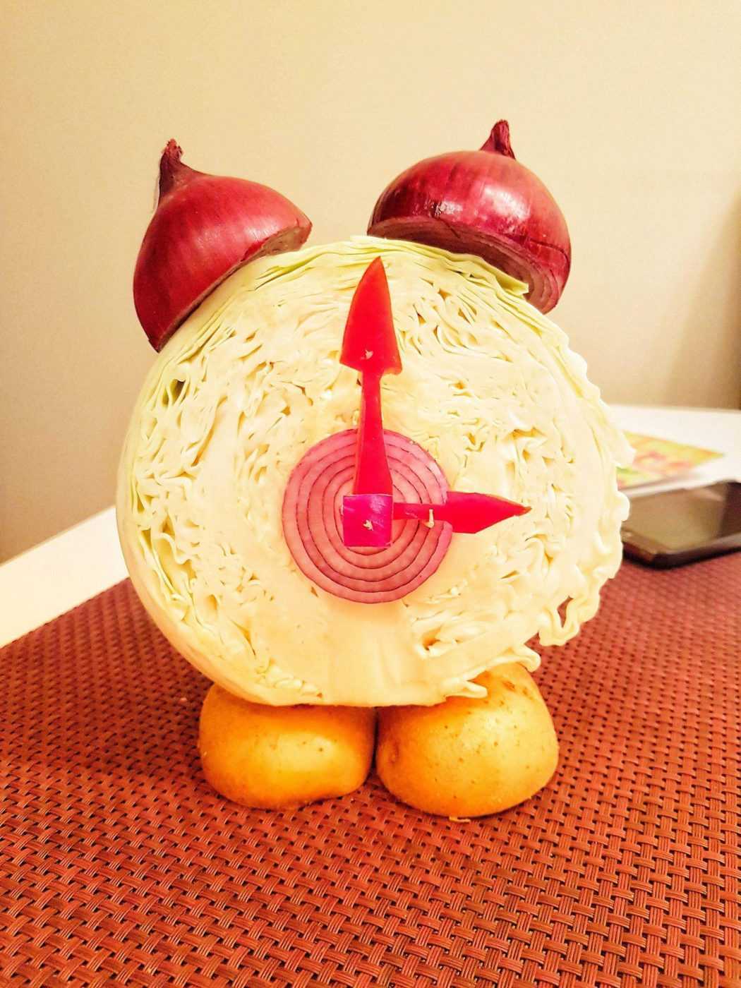 Из кабачка, капусты и морковки у нас может получиться очень эффектный зайчик!