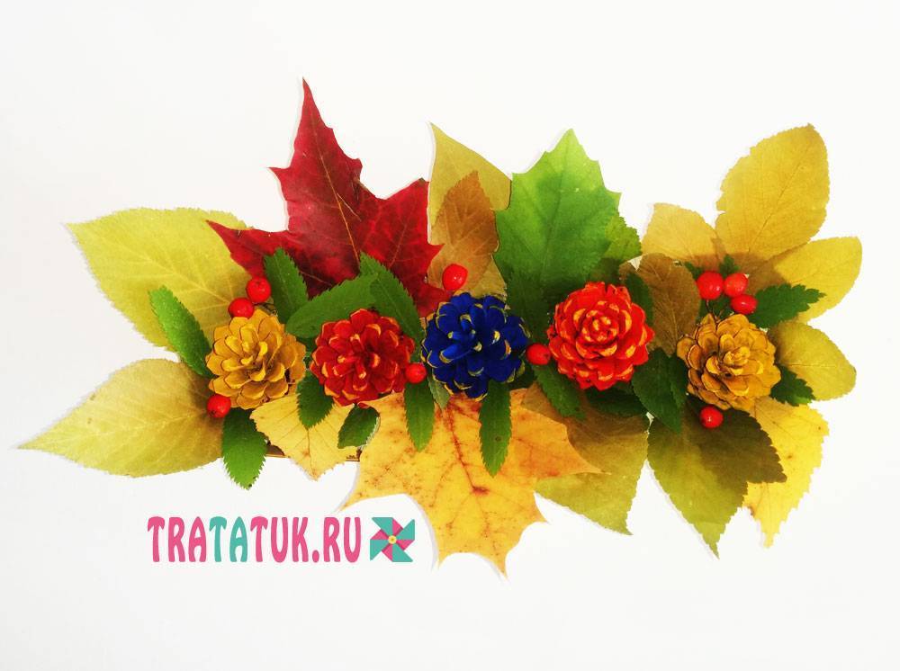 Подробнее в обзоре: Осенняя композиция из шишек, листьев и ягод