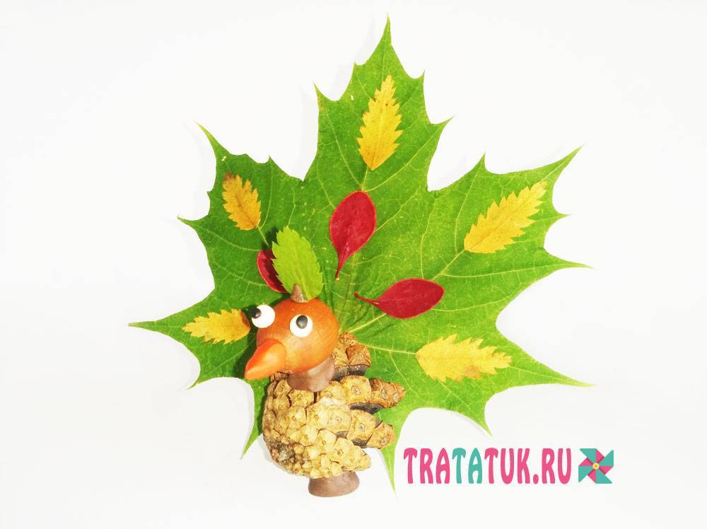 Еще одна мелкая осенняя поделка из природных материалов, но такая же, как и бабочка – яркая и всегда интересная. Подам хорошую идею: можно создать несколько таких павлинов и будет очень красочный эквивалент курятника