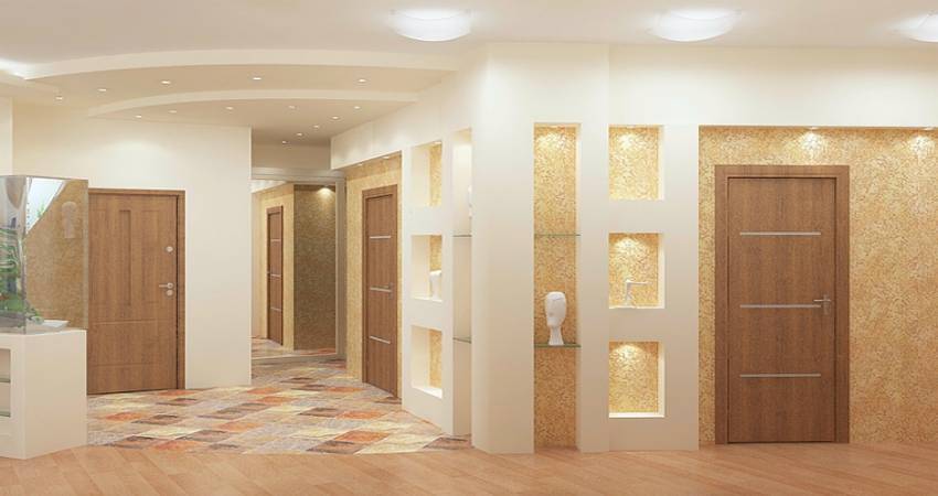 Габариты коридора дополняет высота потолков современной квартиры, в результате создается впечатление избыточного пространства, даже если квартира сама по себе не очень большая.