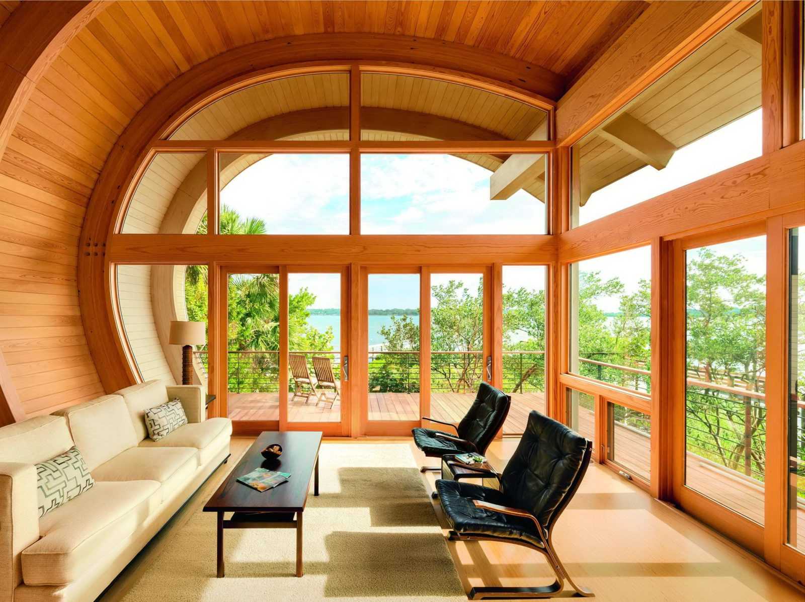 Здесь нет видимых функциональных различий. Выбор определяет стиль дома и замысел дизайнера. Стекла, обрамленные рамами, делают пристройку банальной. Чтобы придать индивидуальность, выбирают нетрадиционную конструкцию. Она подчеркивает уникальность помещения, создает единение с природой.