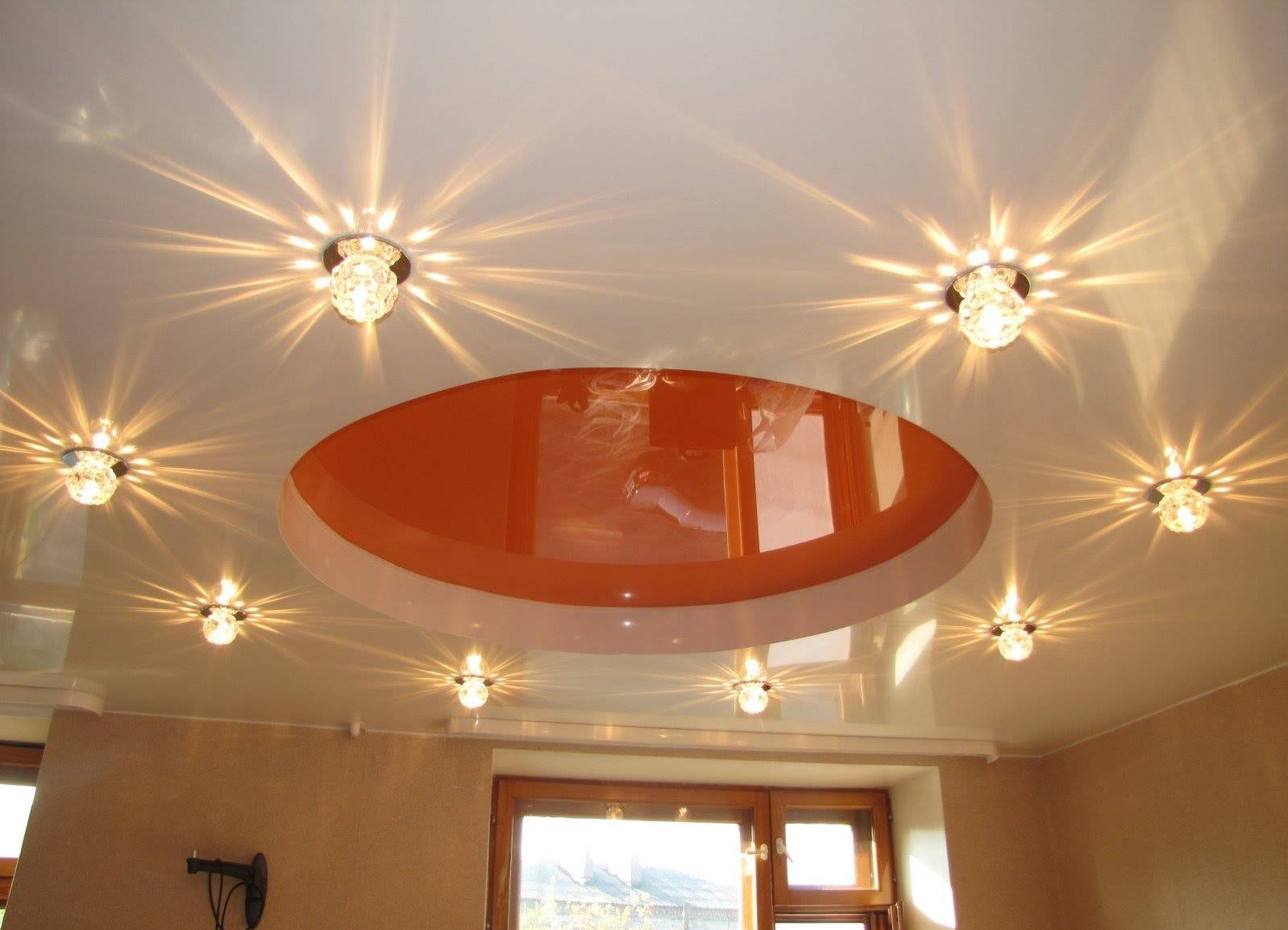 Сделать точечное освещение в натяжном потолке гостиной несложно, если разобраться в его особенностях