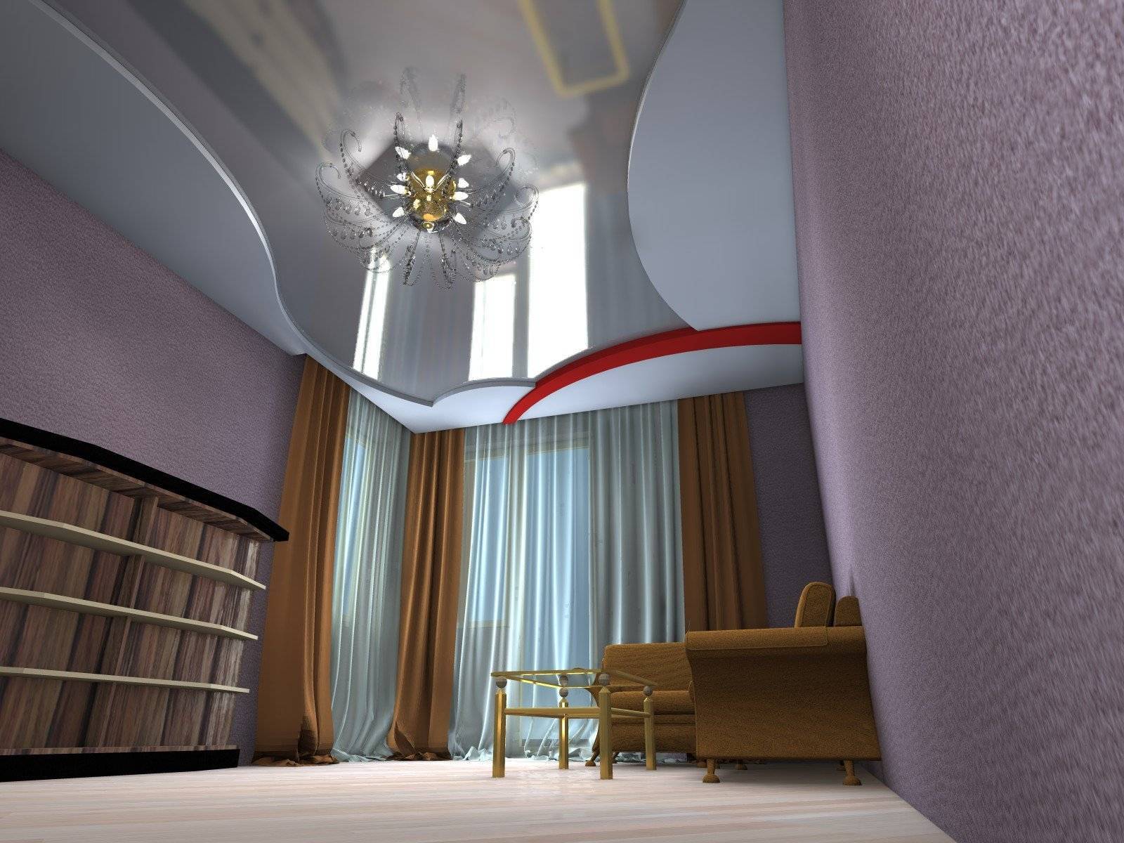 Комбинирование гипсокартона и натяжных пленочных потолков, фото