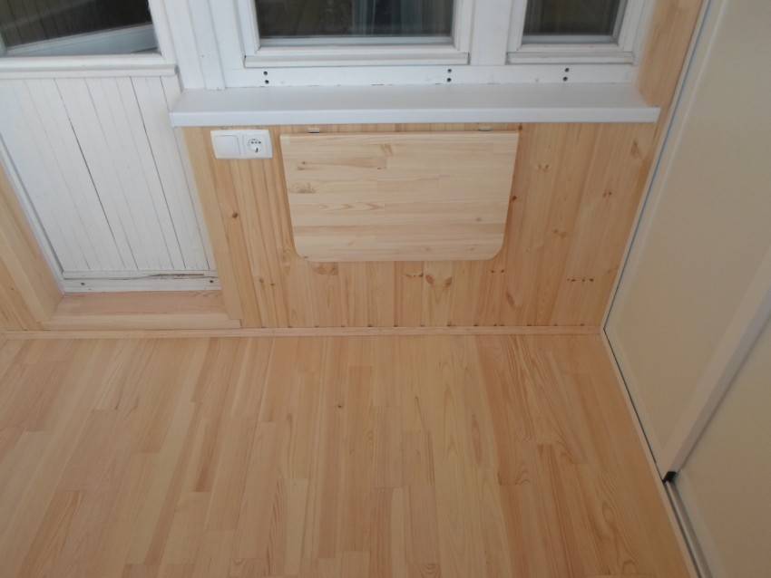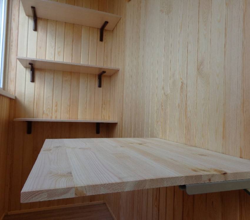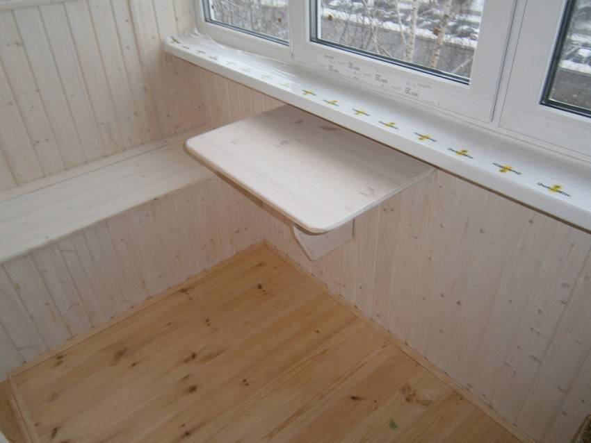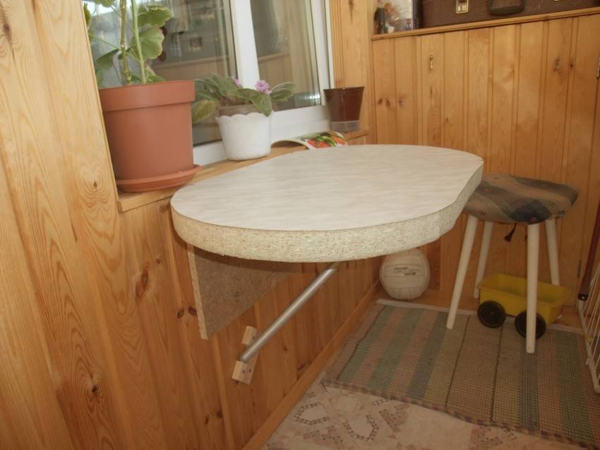 Комбинированный | Столешницы делаются из дерева или плит, а несущий каркас из металла. Столы характеризуются увеличенными показателями прочности, при необходимости столешницы могут меняться новыми. Недостатки: несколько усложняется процесс изготовления – надо обладать навыками сварщика. Кроме того, ухудшается и без того скромный внешний вид откидного столика. |