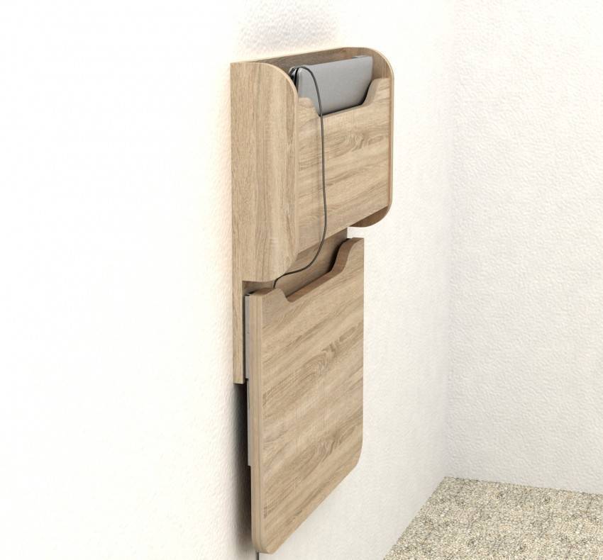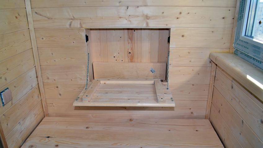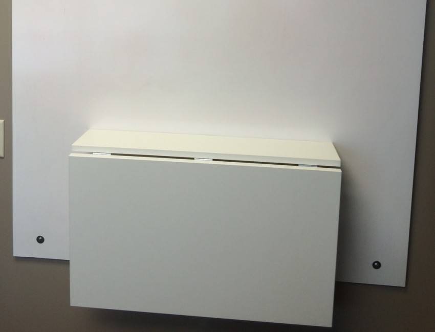 Откидной стол может быть установлен на открытом месте или маскироваться под элемент какой-либо конструкции.