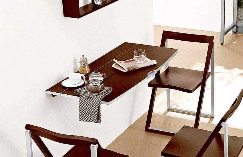 Такая модель мебели будет вполне уместна на кухне или на балконе. Столы стенного крепежа пользуются популярностью благодаря следующим преимуществам: