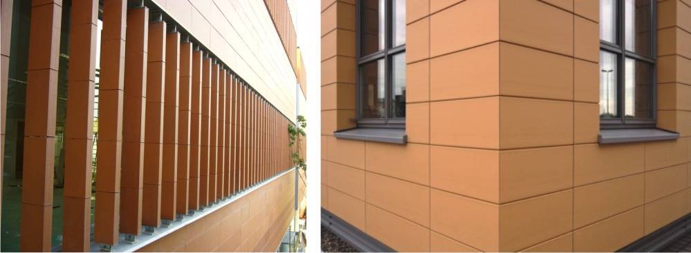 Чтобы легче было сориентироваться, пройдемся по сертифицированным в составе систем навесного фасада маркам. Немецкие производители производят качественную терракоту, но стоит она дорого, и в евро. Цена в евро заставляет задуматься о стабильности расценок на продукцию для нас. Это такие марки как Аргетон и Мёдинг.