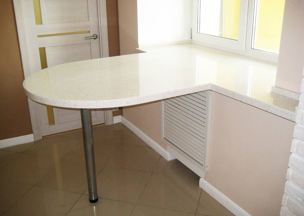Мрамор или камень используется очень редко и чаще всего в дорогих интерьерах. Если кухня уж совсем маленькая, тогда можно сконструировать откидную столешницу. Она легко регулируется и не загромождает кухонное пространство.