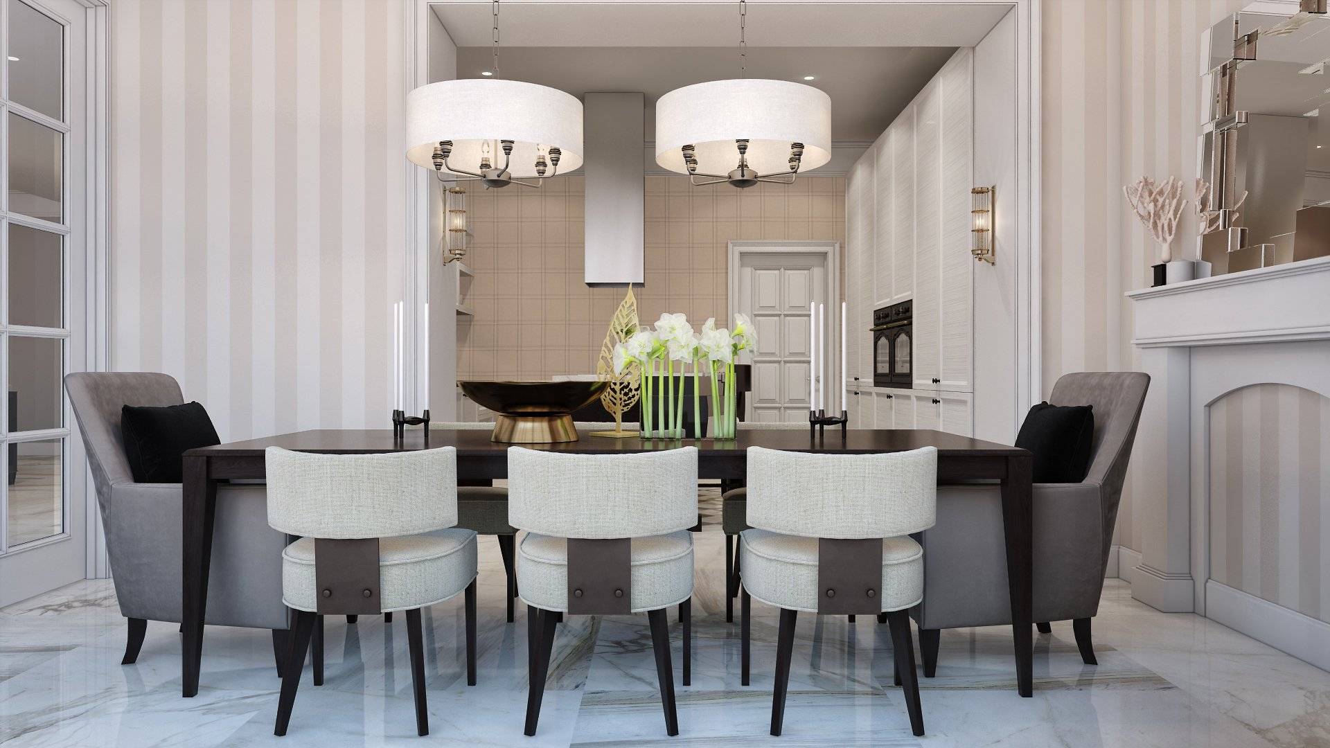 Для обеденной зоны запланируйте место исходя из образа жизни, состава и численности семьи. Это может быть компактная барная стойка в маленькой студии или длинный обеденный стол для большой семьи.