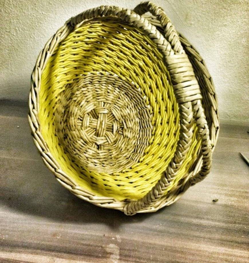 Чтобы сплести простейшую корзинку из трубочек вам понадобится основа вокруг которой вы будете делать свою работу. Можно обойтись и без неё, но тогда поделка может получится не симметричной или даже кривой. В качестве основы отлично подойдут различные ведёрки, миски, контейнеры и прочая посуда из кухни, применив вышеописанные техники вы с лёгкостью сплетёте такую корзиночку, для всяких мелочей.