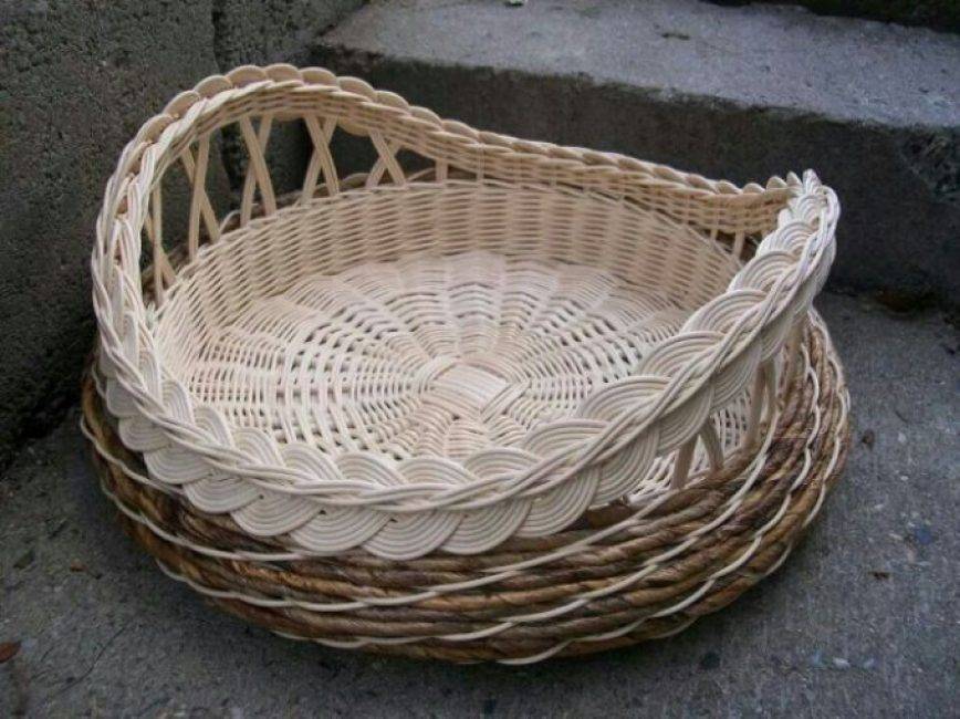 Такой тип изделия отлично подойдет в качестве настольной хлебницы. Достаточно поместить внутрь вкладыш из ткани и красивая хлебница для подачи на стол гостям – готова. Работа будет основана на применении специального приспособления, помогающего быстрее сплести основание изделия.