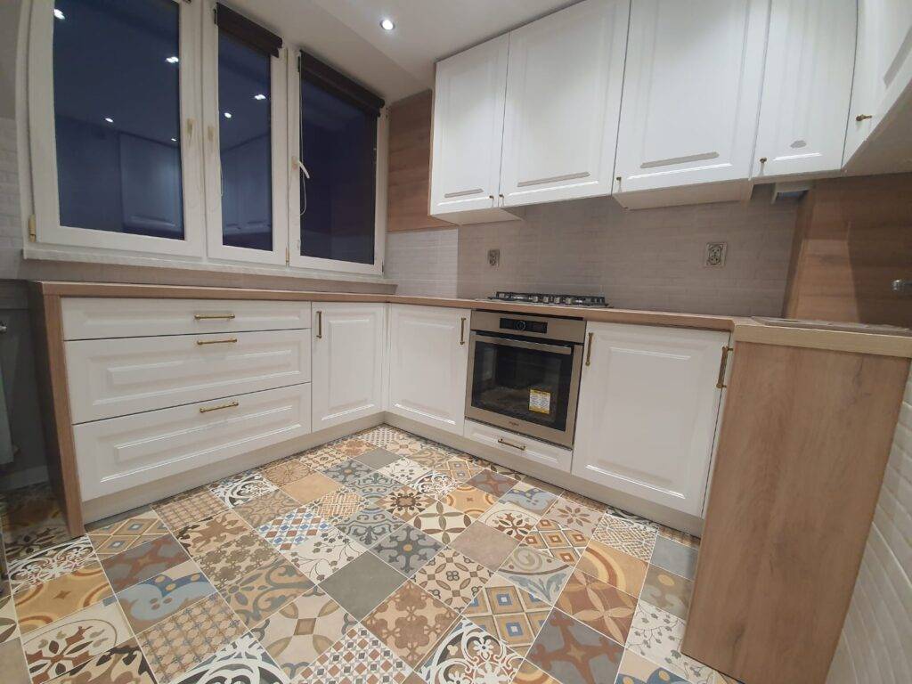 Для напольного покрытия кухни подходит только крепкая плитка, так как на неё будет приходится большой вес