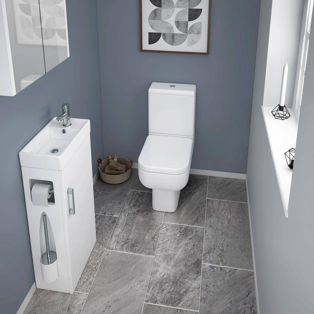 - Правила дизайна регламентируют использование размеров деталей интерьера в соответствии с масштабами помещения, что также применимо для таких отделочных материалов, как кафельная плитка. Другими словами, чем меньше площадь туалета, тем меньше должны быть габариты плиточных элементов. В противном случае комната будет казаться еще меньше.