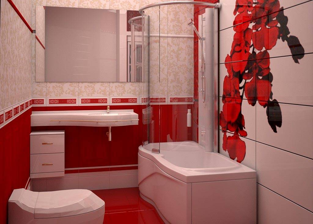 Вариант сочетания плитки для создания экстравагантных стилей. Красный – цвет ярости и любви, победы и наслаждения, поэтому подойдет для тех, кто ведет активный образ жизни и привык находиться среди ярких тонов.