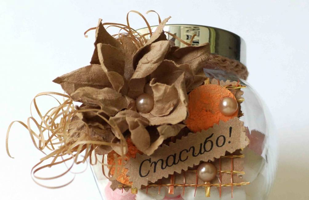 - заполнить конфетами баночку, плотно закрутить крышку;