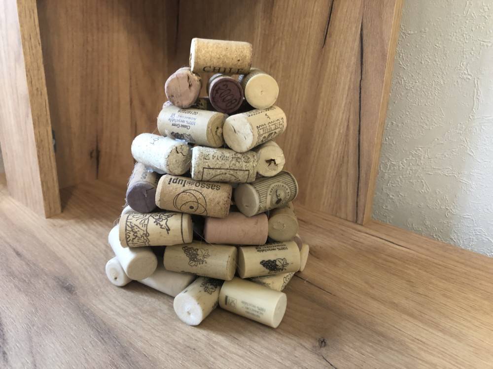 Какой праздник без елки? Сделать маленькую елочку можно из винных пробок. Ее даже можно нарядить маленькой гирляндой и поставить на праздничный стол. В сочетании с подсвечниками из пробок можно создать настоящую волшебную атмосферу.