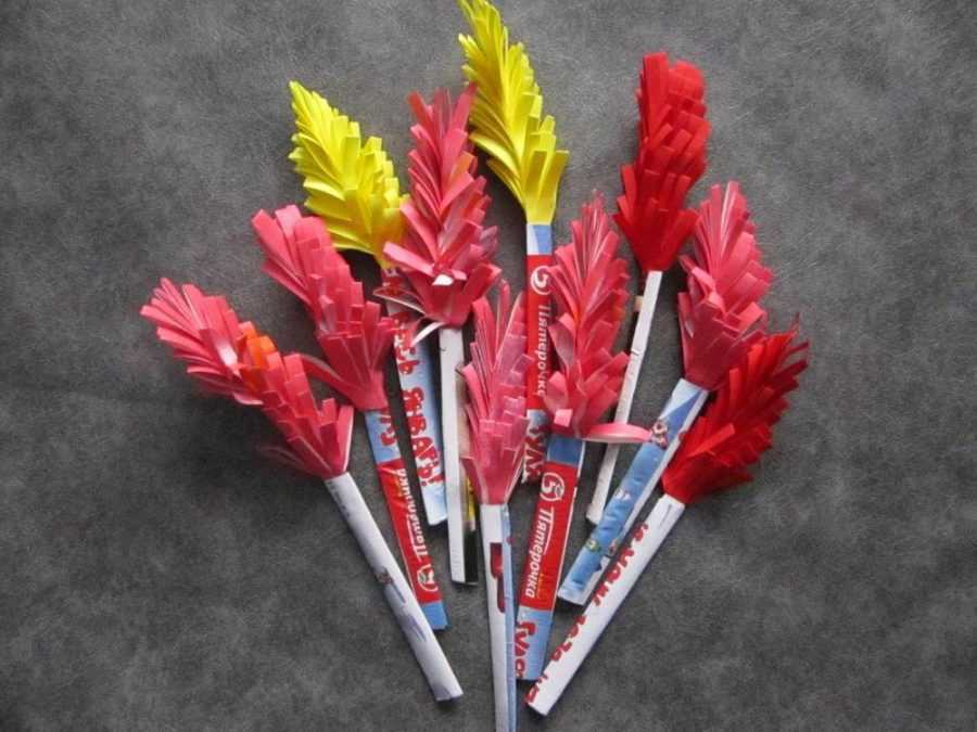 На ножках поделки обозначим стопы, просто загнем концы трубочек вверх.