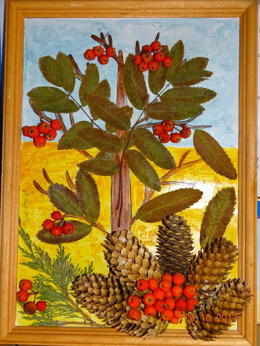 Чем младше ребенок, тем проще должно быть его «творение». Для самых маленьких подойдут аппликации из листьев и семечек, простенькие картины из соломы, фигурки, скомбинированные из пластилина и шишек, каштанов, желудей.