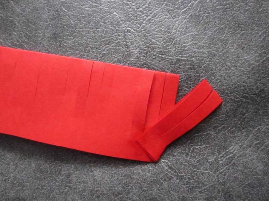 4. Часть красного листика режем пополам и клеим как плавники рыбке.
