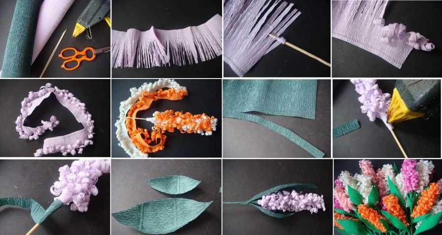 Особенностью этих цветов является последовательное крепление нескольких чашечек на стебле. В качестве стебля для первоцвета можно использовать длинную шпажку, палочку для суши или трубочку для напитков. Изогнутый стебель ландыша требует более пластичного материала, например, толстой проволоки.