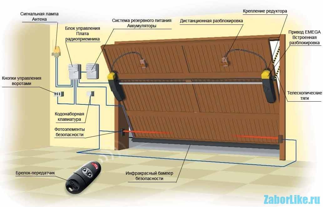 Схема устройства подъёмно-поворотных ворот для гаража