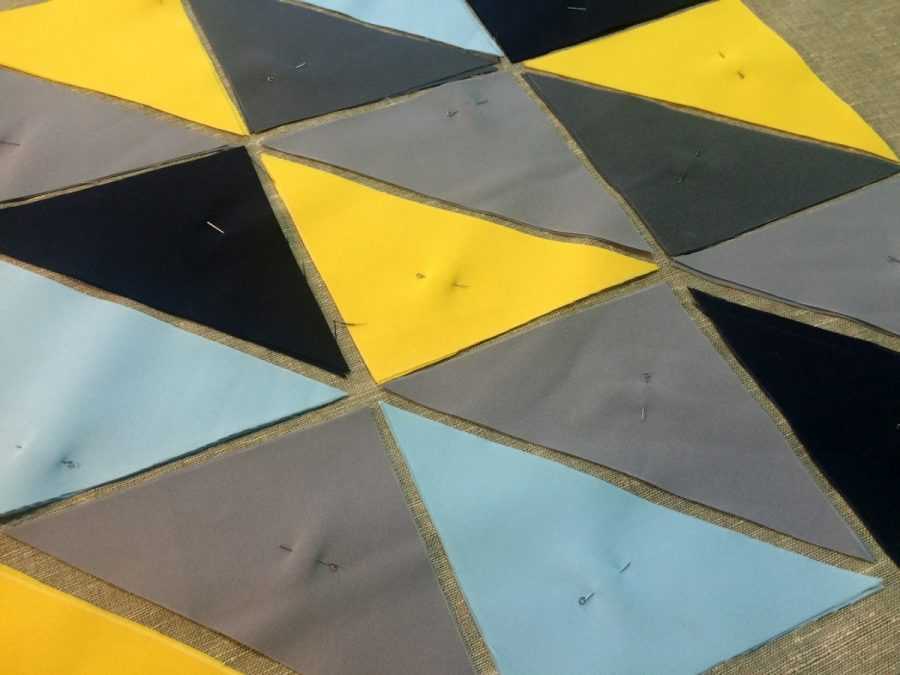 - Надежно закрепите булавками стороны, чтобы они не смещались.