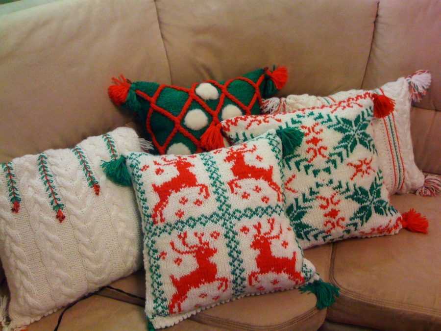 Другой распространённый способ украсить подушечку — сшить на неё чехол из ненужного свитера или же связать его спицами или крючком. Такие чехлы делаю атмосферу по-домашнему тёплой, а в зимнее время смотришь на такую вещь и согреваешься.