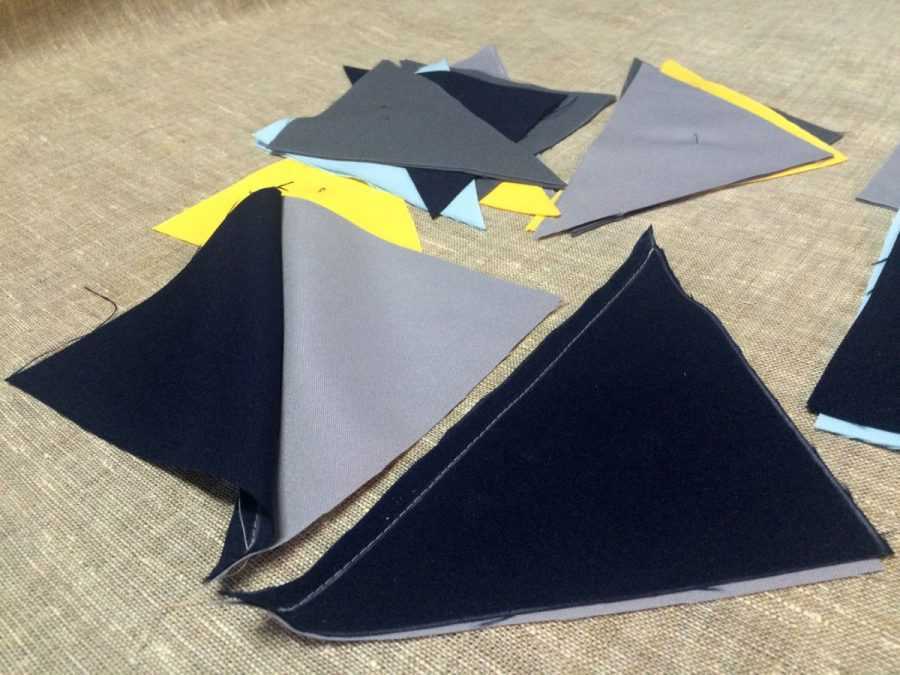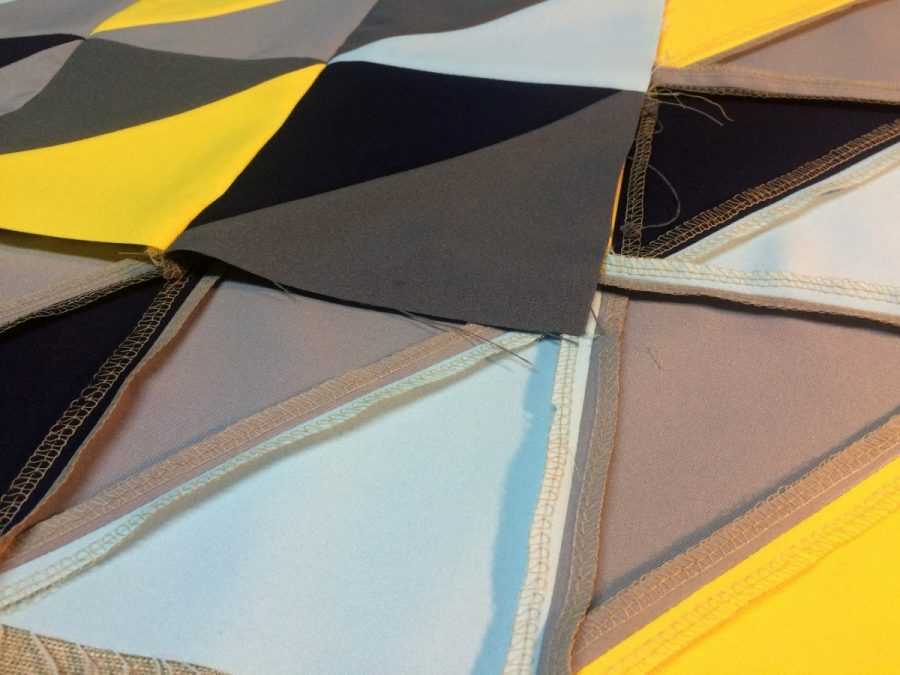 Необязательно использовать много разных лоскутков, можно выбрать мозаичный вариант из пары разных цветов и сшить их между собой